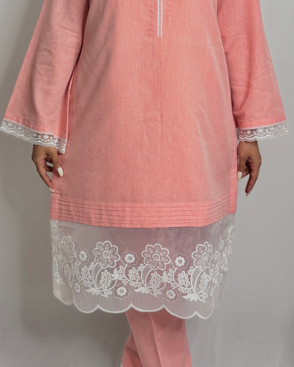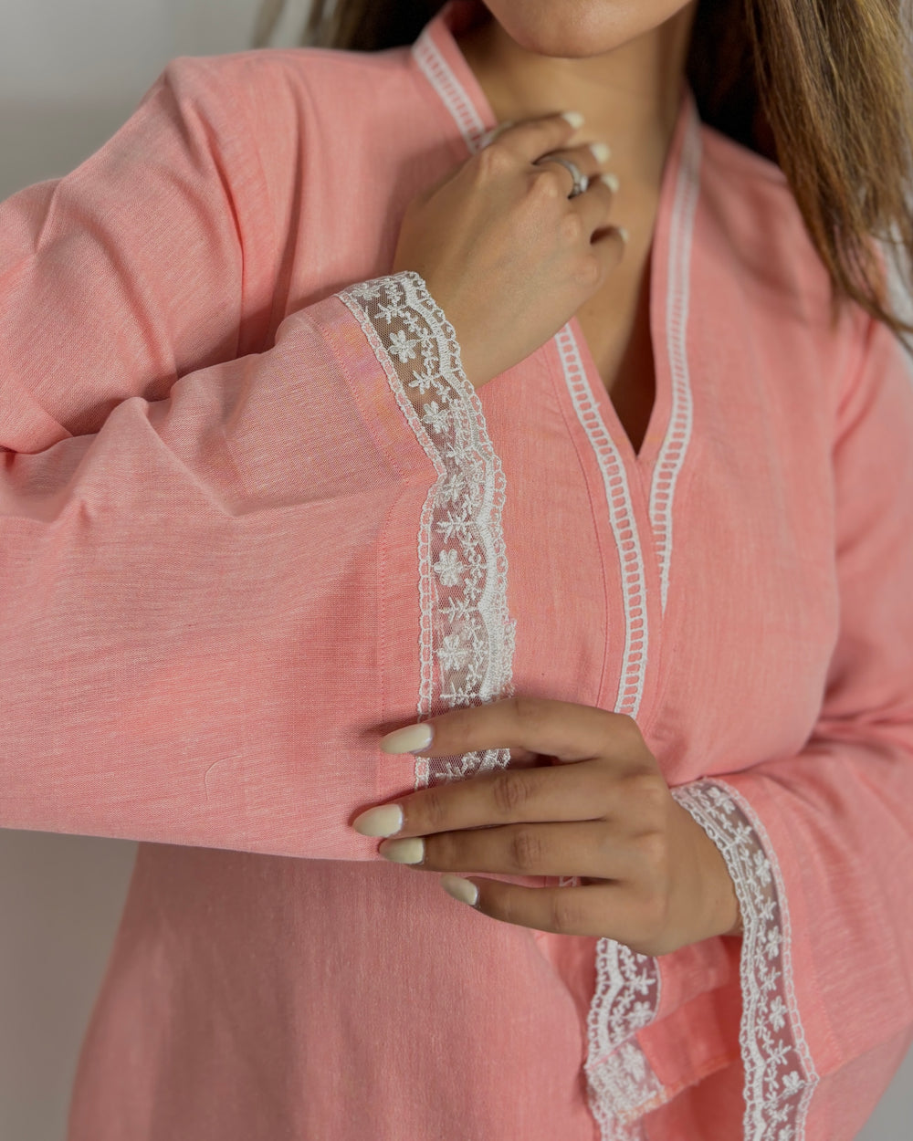 Step into effortless elegance with this Peach Lace Co-ord Set, designed for women who love a soft, feminine, and sophisticated fashion statement. The delicate lace detailing adds a luxurious charm, making this outfit perfect for parties, dinner dates, special occasions, and premium wardrobe styling. The soothing peach shade enhances its graceful appeal, while the modern co-ord silhouette ensures a chic and flattering fit.