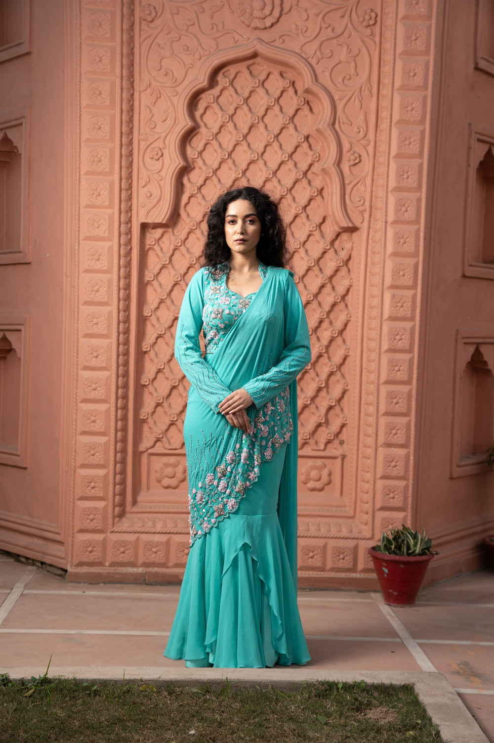 Experience effortless elegance with our Pre-Draped Saree, designed for today’s modern woman who loves the charm of traditional Indian wear without the hassle of draping. This ready-to-wear saree features a beautifully stitched silhouette that flows gracefully, offering a sleek and flattering look for any body type.